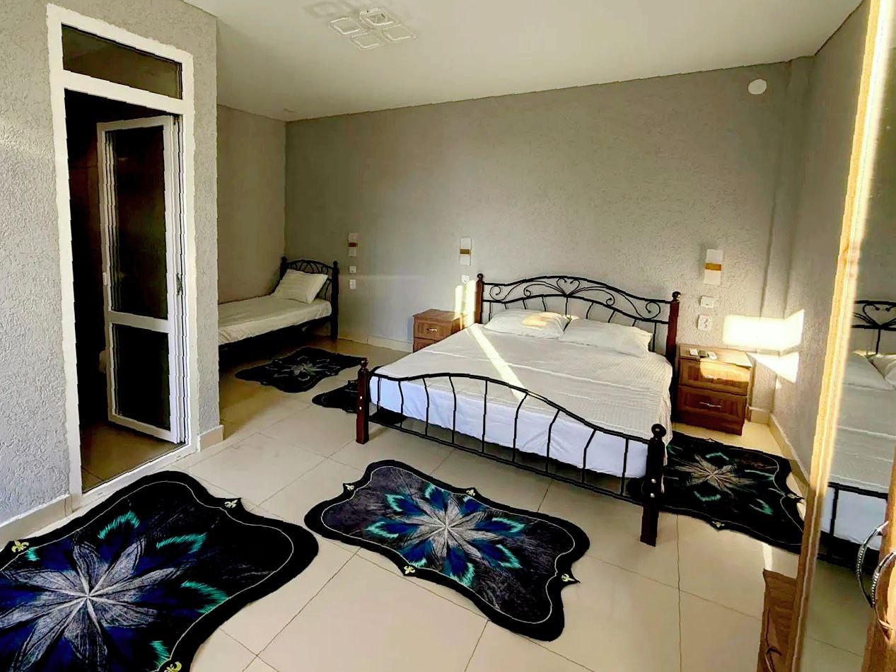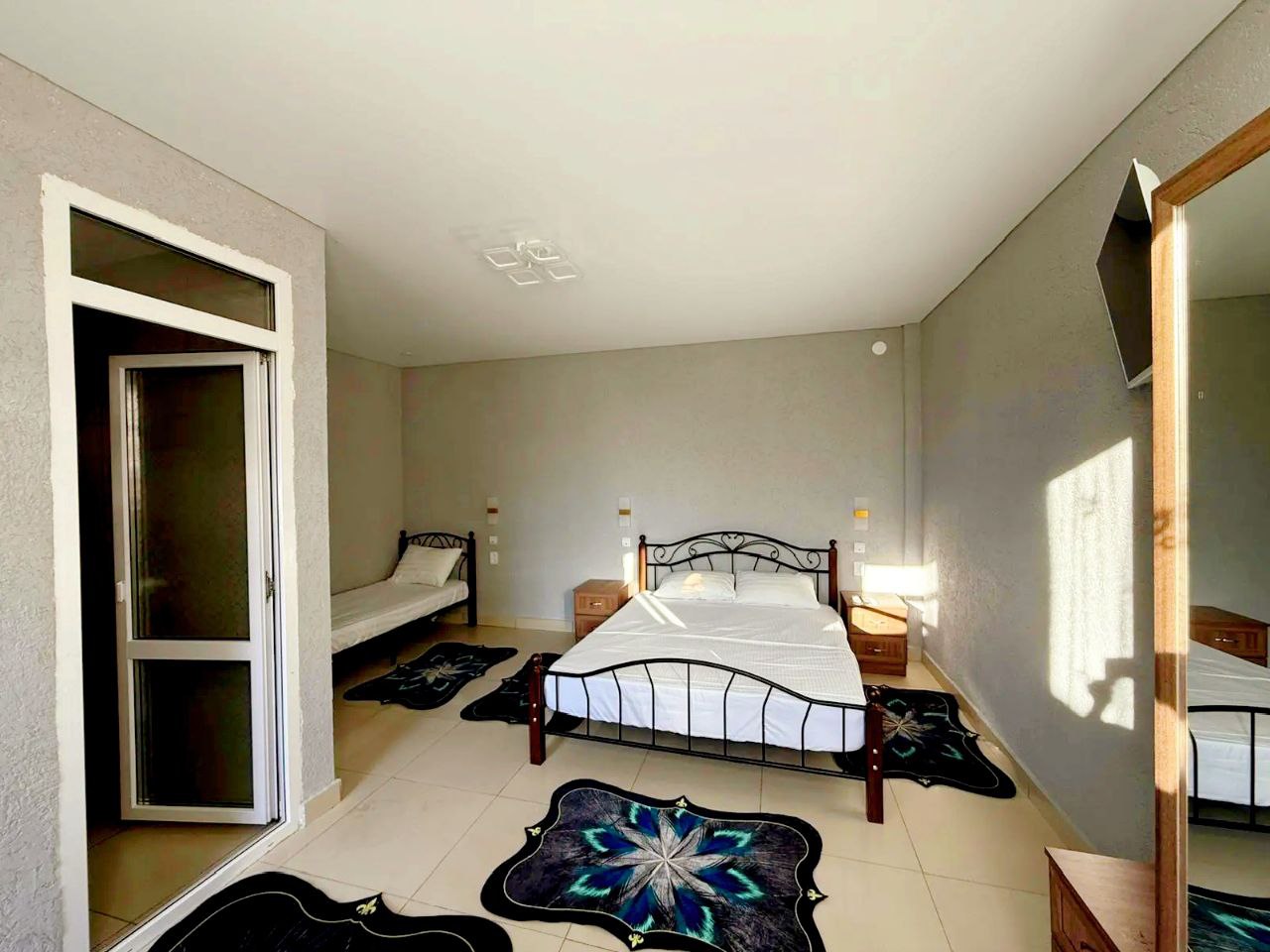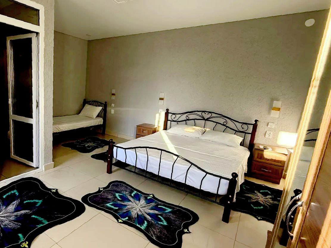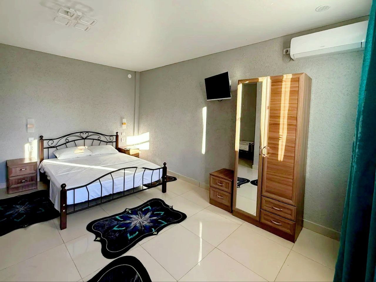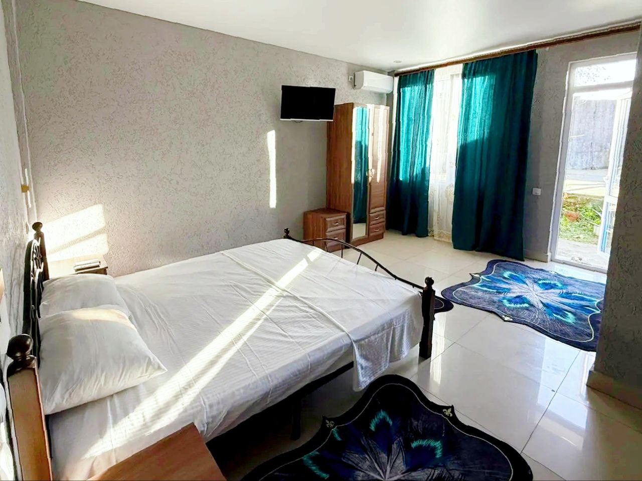 - Две кровати — двух и односпальные, шкаф, две тумбы